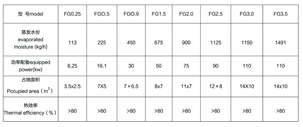 注:表中水份蒸發(fā)量是以玉米淀粉,初水份40%,終水份13.5%,進(jìn)風(fēng)溫度20℃時(shí)測(cè)定