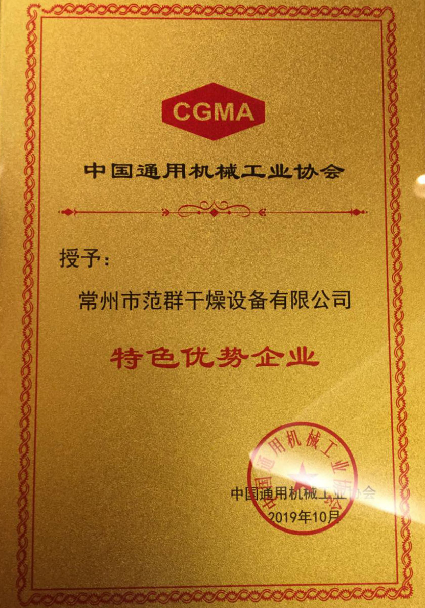 國(guó)際流體機(jī)械產(chǎn)業(yè)論壇旨在通過(guò)專(zhuān)業(yè)性、權(quán)威性的平臺(tái),國(guó)際化的視野與角度讓企業(yè)捕捉到技術(shù)的方向、產(chǎn)品的未來(lái)、市場(chǎng)的趨勢(shì),將知識(shí)轉(zhuǎn)化為生產(chǎn)力。中國(guó)通用機(jī)械工業(yè)協(xié)會(huì)授予常州市范群干燥設(shè)備有限公司“2019年度中通協(xié)干燥設(shè)備特色優(yōu)勢(shì)企業(yè)”。