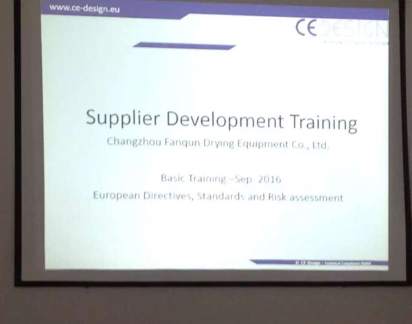 2016年9月2日至9月8日,我公司專門聘請德國專家為公司員工進行歐洲機械指令、CE(CE certification)等安全方面的培訓。我公司組織技術(shù)、生產(chǎn)、質(zhì)檢、工藝、售后等部門認真聽取課程內(nèi)容,各部門結(jié)合自身情況積極互動,取得了良好的效果。經(jīng)過本次培訓,我公司各環(huán)節(jié)的行為將更加規(guī)范化、標準化,未來將會為客戶提供更好的服務(wù)。