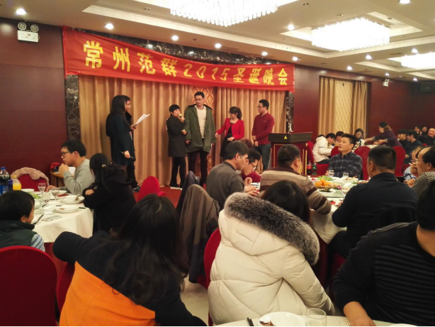 12月24日晚,在星月大酒店二樓大廳舉行常州范群2015年圣誕晚宴,公司全體員工齊聚一堂,歡度圣誕,迎接2016年元旦的到來。晚上5點半,晚宴正式開始,首先董事長范總發(fā)言,介紹了今年公司的整體情況和目前的銷售額完成情況,在今年整個經(jīng)濟環(huán)境因素不利的大背景下,銷售額雖然比去年略有下降,但是這是全體員工共同努力的結(jié)果,2015年我們克服困難、經(jīng)受住了磨礪、豐富了經(jīng)驗。在企業(yè)發(fā)展走向成熟和壯大的過程中也暴露出了我們的一些問題和不足,需要我們不斷修正和改進。2016年,將是我們創(chuàng)造夢想、持續(xù)發(fā)展的關(guān)鍵之年,我們將為創(chuàng)造范群的美好未來,凝心聚力、集思廣益、奮力拼搏;以創(chuàng)新發(fā)展為動力,迎難而上、團結(jié)協(xié)作、開創(chuàng)2016年范群公司的新輝煌!為社會的發(fā)展做出應(yīng)有的貢獻!