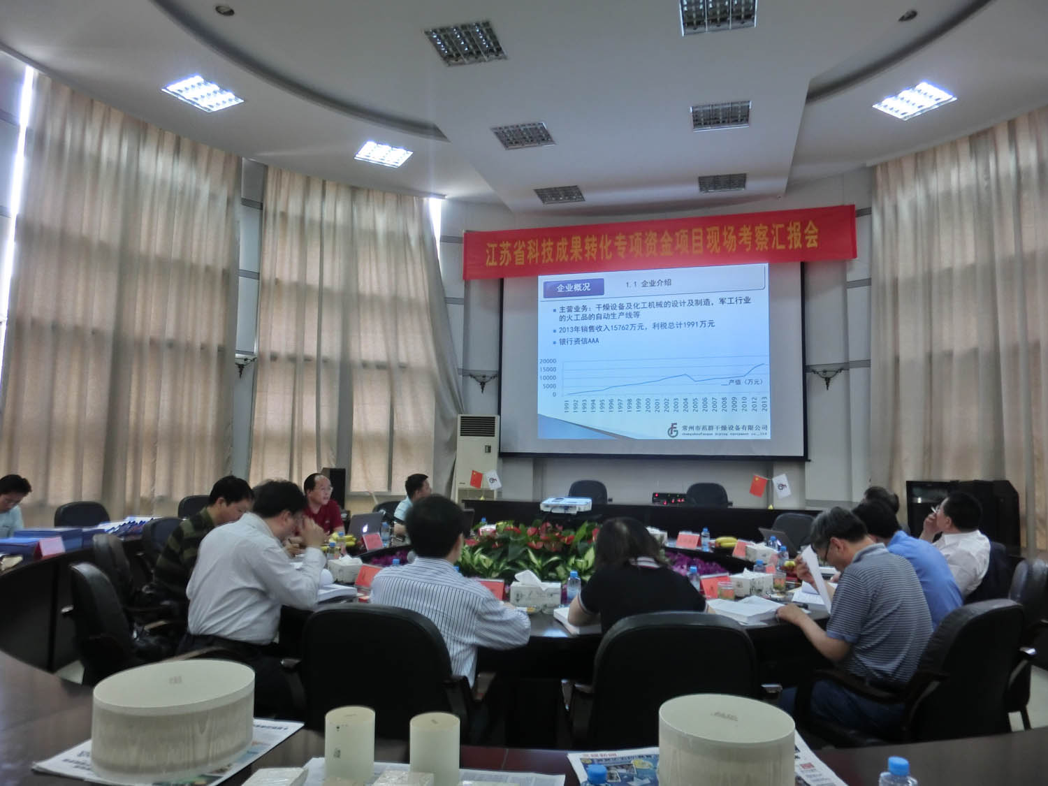 5月22日上午,由江蘇省科技廳、常州市科技局、新北區(qū)科技局領(lǐng)導(dǎo)和專家組成的專家組來到我公司,在我公司會議室召開了“江蘇省科技成果轉(zhuǎn)化專項(xiàng)資金項(xiàng)目現(xiàn)場考察匯報(bào)會”,會上公司董事長范炳洪先生作了專題匯報(bào),并重點(diǎn)介紹了這次申報(bào)項(xiàng)目的具體情況,陪同領(lǐng)導(dǎo)和專家實(shí)地察看了公司研發(fā)中心、實(shí)驗(yàn)室、生產(chǎn)車間等;各位專家詳細(xì)聽取了匯報(bào),并認(rèn)真了解申報(bào)項(xiàng)目中的產(chǎn)品生產(chǎn)和運(yùn)行情況,詢問有關(guān)項(xiàng)目產(chǎn)品的一些問題。專家組成員肯定了我公司的資料準(zhǔn)備充分,所報(bào)項(xiàng)目也得到專家的一致認(rèn)可。