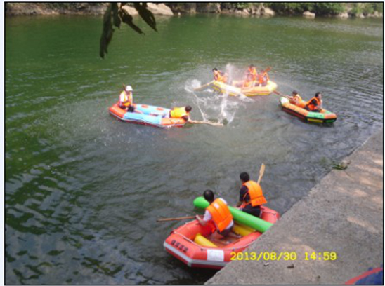 第二天早餐后我們來到了華東地區(qū)最后一篇原始森林、國家級野生動植物自然保護(hù)區(qū)石臺牯牛降,游覽參觀國家級自然保護(hù)區(qū)、AAAA級景區(qū)石臺牯牛降龍門風(fēng)景區(qū),游覽“嚴(yán)家古村” 居住著東漢著名隱士嚴(yán)子陵的后裔,典型的徽州民居古建筑保存完好。村中有老磨房、古祠堂和寫著紅軍北上抗日直至大躍進(jìn)、文化大革命等各個時期標(biāo)語的“標(biāo)語墻”;“情人谷”三面環(huán)山,巖壁陡峭,茂林修竹、泉水淙淙,是情侶眷屬的好去處;“四疊飛瀑”象一匹碩大的四疊白練直掛崖壁,如雪似玉,曲折回環(huán),似從天來、蠟燭峰等景點;龍門大峽谷:河馬戲鱷、“龍門潭” 潭水青碧,峽谷幽深,怪石遍布,古木如蓋,有百丈巖、滾石灘等景點,實為大自然創(chuàng)造的“無聲的詩,立體的畫”。 下午赴中國境內(nèi)最美的河流——秋浦河怪潭漂流景區(qū),在素有“詩之河”之美譽的秋浦河上游,河水常年澄碧清澈,兩岸古柳依依,峻峰林立,美景甲天下。全程采用皮劃艇體現(xiàn)參與性和互動性讓大家更深入的親近大自然、體驗大自然,各位同事時而泛舟前行,時而駐足打起水仗,笑聲連連不斷。