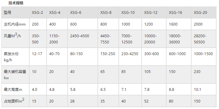 注:1.水分蒸發(fā)量是以進風(fēng)溫度為1 80oC,出風(fēng)溫度為80oC 時每小時蒸發(fā)的水份,