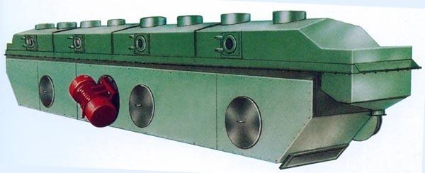 物料自進料口進入機內,在振動力作用下,物料沿水平方向拋擲向前連續(xù)運動,熱風向上穿過流化床同濕物料換熱后,濕空氣經(jīng)旋風分離器除塵后由排風口排出;干燥物料由排料口排出。