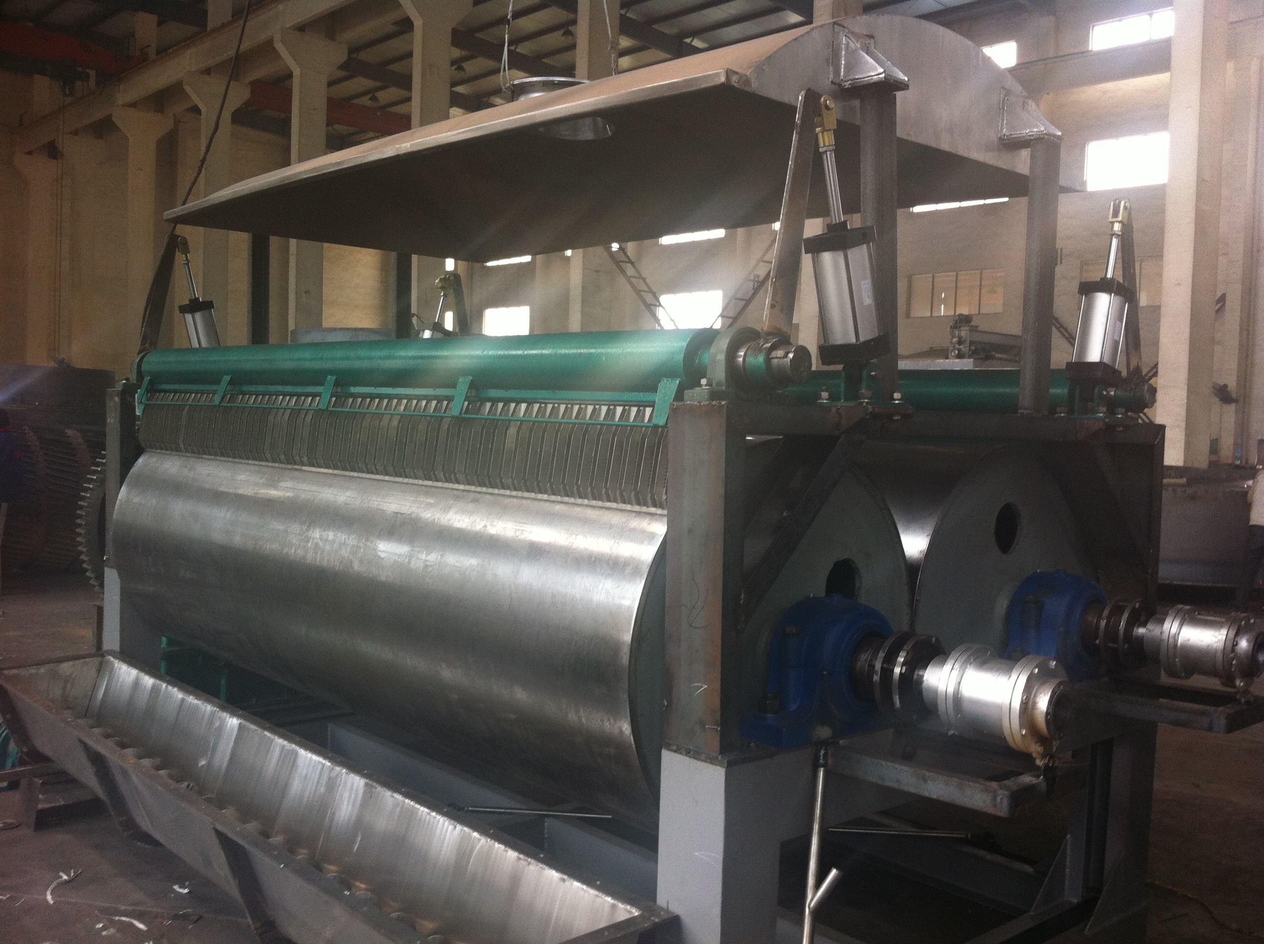 臥式盤式干燥機設(shè)備在枯燥的資料落在底部的房子一層枯燥板,最后被搬運到耙葉出卸貨港。從排出的物猜中的水分從口腔頂部蓋上排出的水分,盤式真空設(shè)備由泵的頂蓋上的水分排出。從底部排出的干物質(zhì)能夠直接包裝。經(jīng)過翅片加熱器,溶劑收回冷凝器、袋式除塵器,干料返混組織、引風機等輔機,可進步其枯燥才能,干膏和熱靈敏資料能夠很簡略地收回溶劑,可熱分化反響。