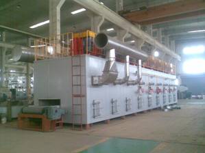 ⊙可以根據(jù)催化劑形狀及產(chǎn)量大小,設(shè)計(jì)出網(wǎng)袋寬度在800-2000mm、長(zhǎng)度在10-50m、溫度在120-600℃之間的各型干燥機(jī)、焙燒爐或一體爐。