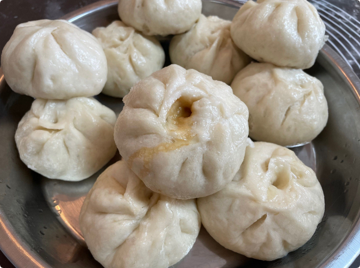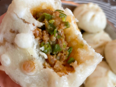 豆娘包子以其皮薄餡大、色香味美,成為經濟實惠的大眾食品,深受回漢兩族群眾的歡迎。經數百年代代相傳,不斷改進,豆娘包子的制作工藝更為完善。選擇牛羊肉要肥瘦適當,然后剔除筋骨,先切塊,后剁碎,再配上蔥姜細絲,加小磨香油、上等醬油、花椒水等調料調餡。發(fā)面稍嫩,使之兜餡而不破,入口軟而不黏。包時上捏三十二褶,兜油攏味,熟后宛如盛開的菊花。